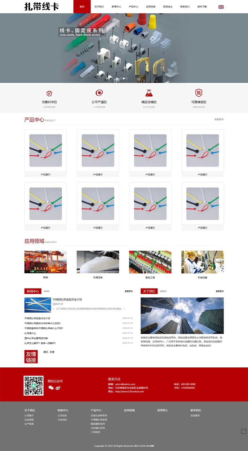 (自适应手机端)中英文双语配线器材类网站PbootCMS模板 扎带线卡网站源码下载