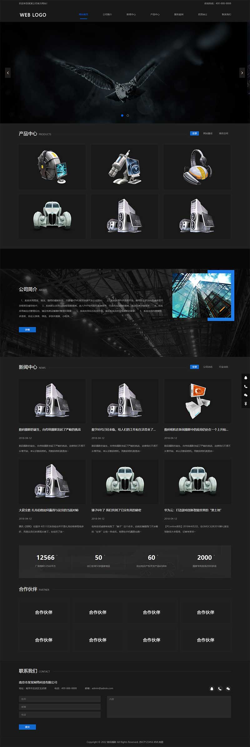 (自适应手机端)响应式高端摄影网站PbootCMS模板 黑色酷炫数码摄影网站源码下载