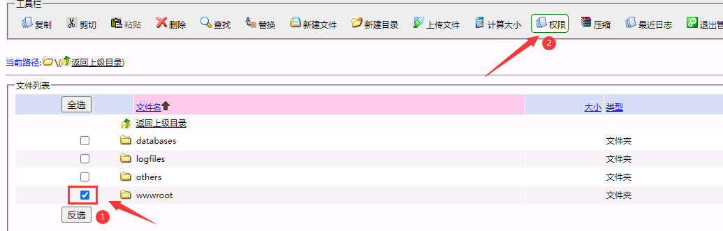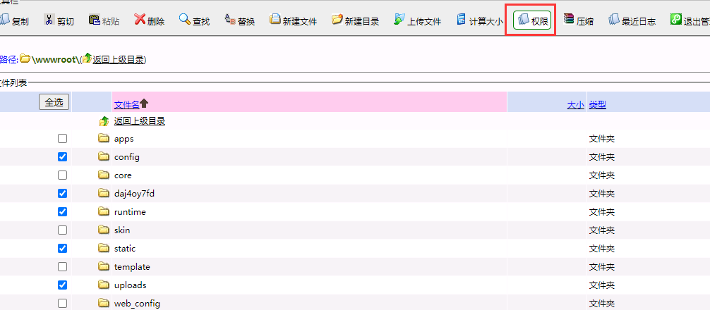 1、登录虚拟主机文件管理 ,勾选 wwwroot 目录 点击权限,将目录设置为只读。