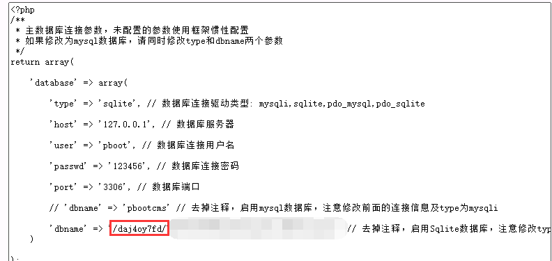 3、修改 /data 目录名称,修改为其他名称,比如 daj4oy7fd , 然后修改配置文件 /config/database.php 的数据库路径为刚刚修改的名称