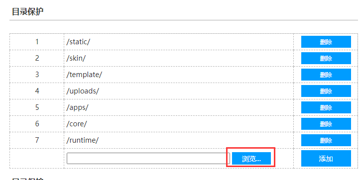 点击 ,目录保护 ,在页面 中点击 浏览,选择对应的文件夹。