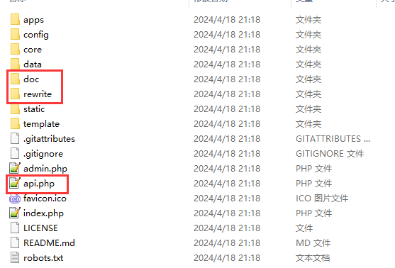 5、删除不需要的文件及目录 /doc 、/rewrite 、/api.php (一般企业网站不需要使用,可以删除)