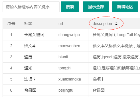 {field: 'description', title: 'description', align: 'left',sort: true},