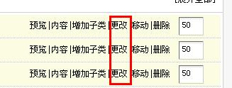 1.首先到网站栏目管理处找到您所要修改的栏目,然后点击对应栏目后面的更改;