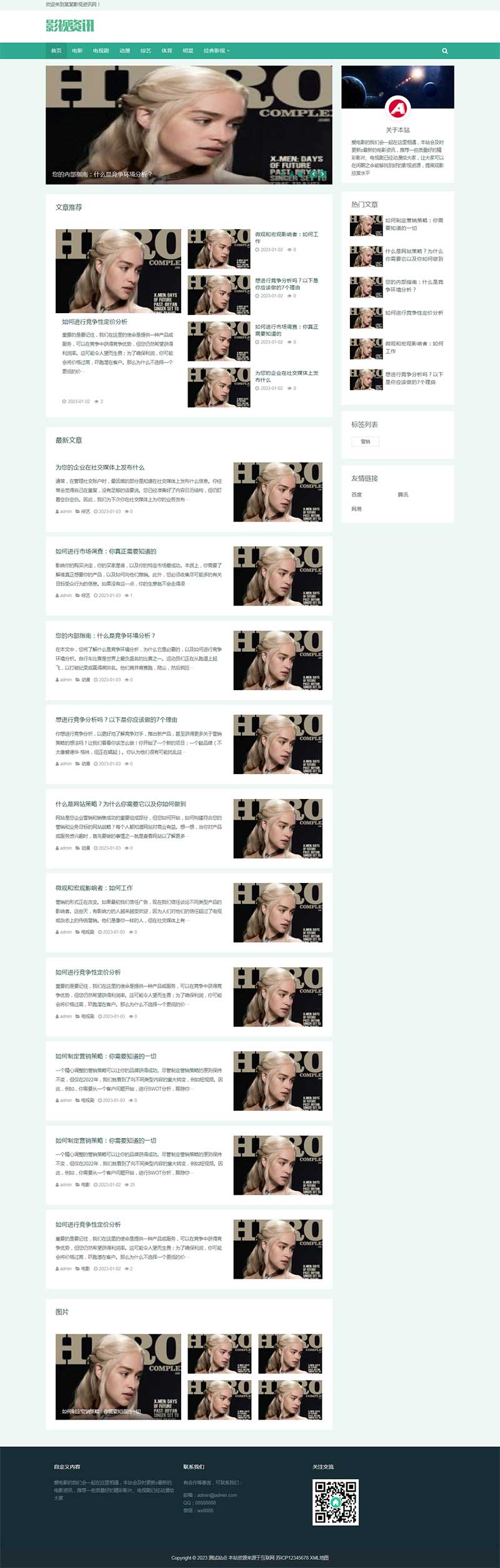(自适应手机端)影视资讯类网站PbootCMS模板 影视新闻博客网站源码下载